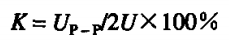 有載分接開關(guān)測試儀在正常工作狀態(tài)下,用數(shù)字電壓表測量每相恒壓源電壓,并進行10min的穩(wěn)定度測量,然后每組輸出之間接一只標準電阻器,用示波器測量電源輸出波形。紋波系數(shù)按式1進行計算: