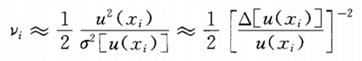 根據(jù)經(jīng)驗,按所依據(jù)的信息來源的可信程度來判斷u(xi)的相對標(biāo)準(zhǔn)不確定度Δ[u(xi)]/u(xi)表中列出了按公式計算出的自由度νi值。
