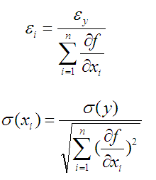 分配給各個(gè)分項(xiàng)的系統(tǒng)誤差和隨機(jī)誤差相等,可分配給各分項(xiàng)的系統(tǒng)誤差和隨機(jī)誤差分別為: