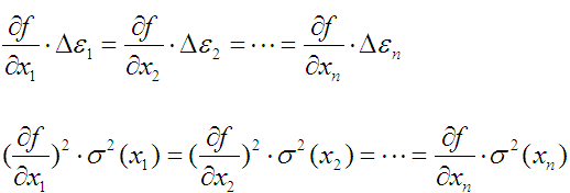 即各分項(xiàng)對測量誤差的總的作用是相同的,但給分配的誤差在數(shù)值上是不相同即: