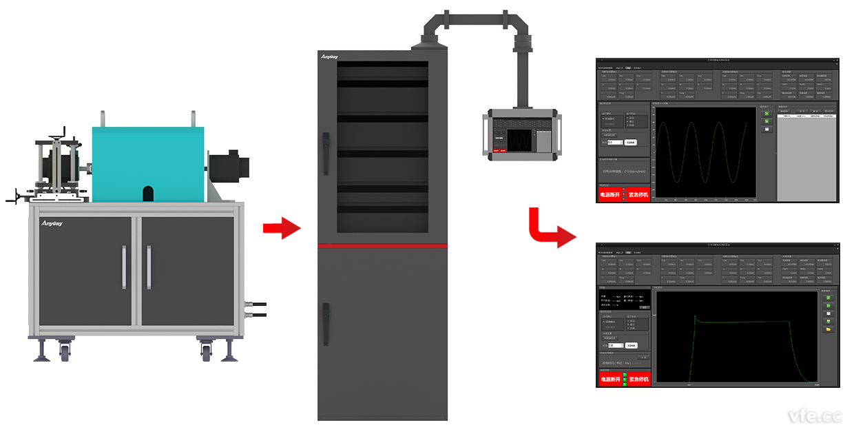 伺服試驗平臺和綜合測試柜之間通過標(biāo)準(zhǔn)接口連線,連線清晰明了、簡單方便。