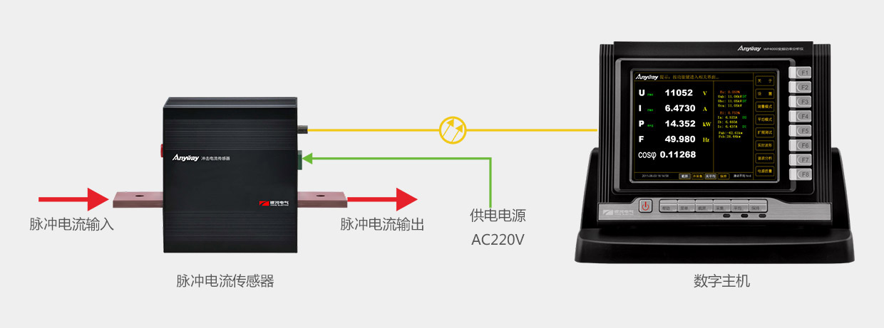 ICSA脈沖電流傳感器測(cè)量原理及其簡(jiǎn)單,將脈沖電流傳感器串聯(lián)至測(cè)量回路中測(cè)量脈沖電流,同時(shí)將測(cè)量的模擬信號(hào)轉(zhuǎn)換成數(shù)字信號(hào)通過(guò)光纖傳輸至數(shù)字主機(jī)進(jìn)行數(shù)據(jù)處理、顯示和儲(chǔ)存,脈沖電流傳感器采用AC220隔離電源供電。